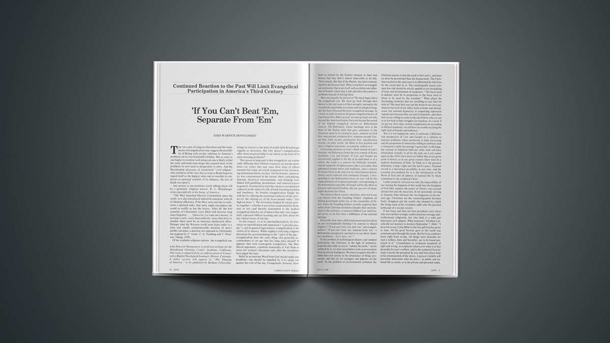 The collapse of religious liberalism and the weaknesses of evangelicalism may suggest the possibility of flirting with secular solutions to America’s problems on its two-hundredth birthday. But as soon ...